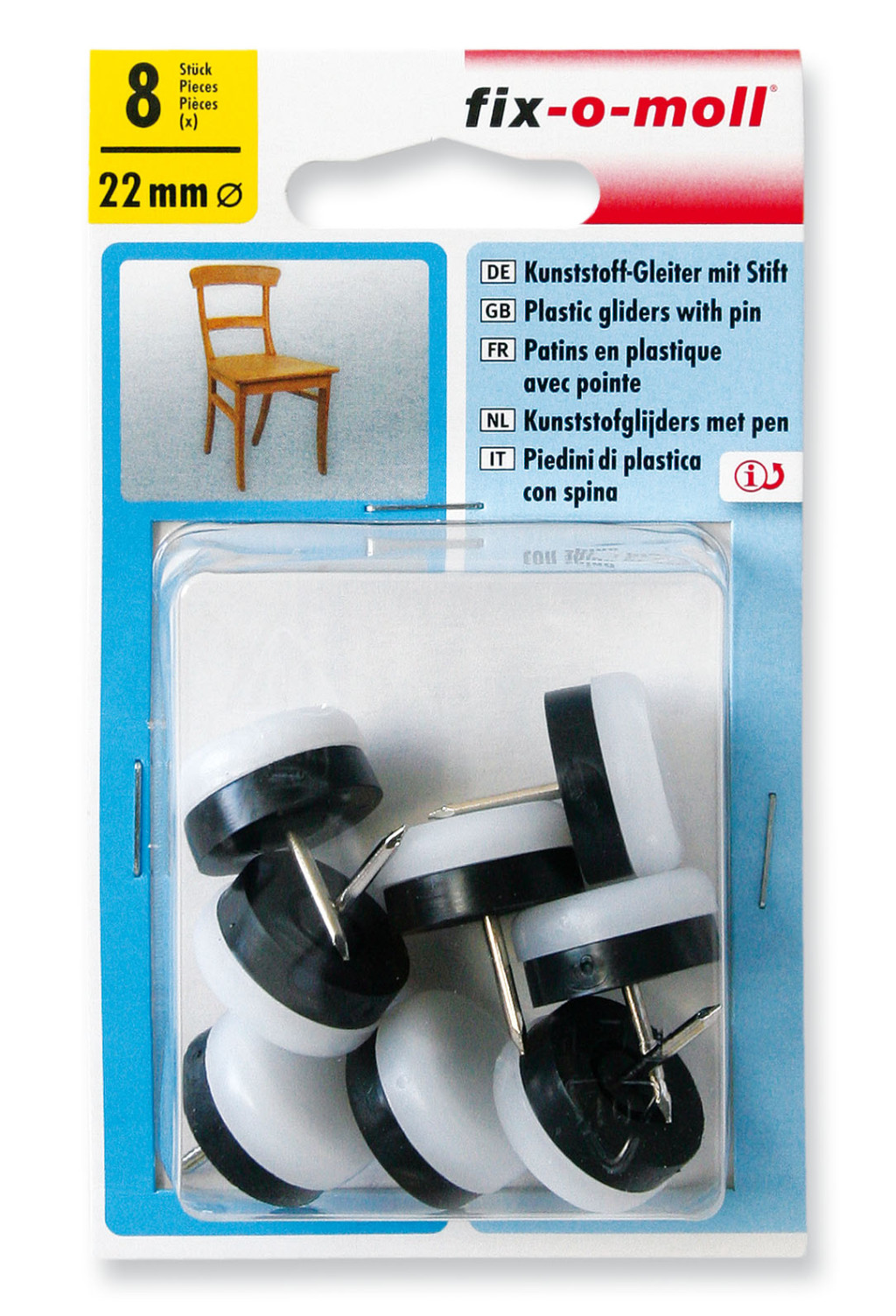 Bútorcsúsztató műanyag fehér 22mm (szögelhető) Fixomoll
