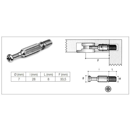 Bútorlapok, szerelvények összefogatására szolgál. Előre létrehozott furatba helyezendő a megfelelő szerszámmal.