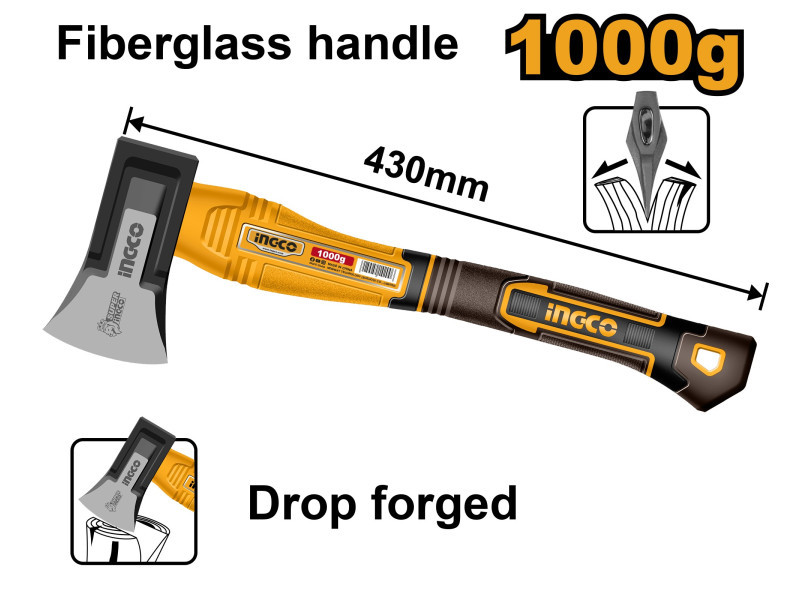 2. A fejsze nyele tartós és biztonságos, gumi bevonatú üvegszálas anyagból készült, ami ütésálló, kényelmes és nem csúszik könnyen. A háromszínű kialakítás szép és nagylelkű.