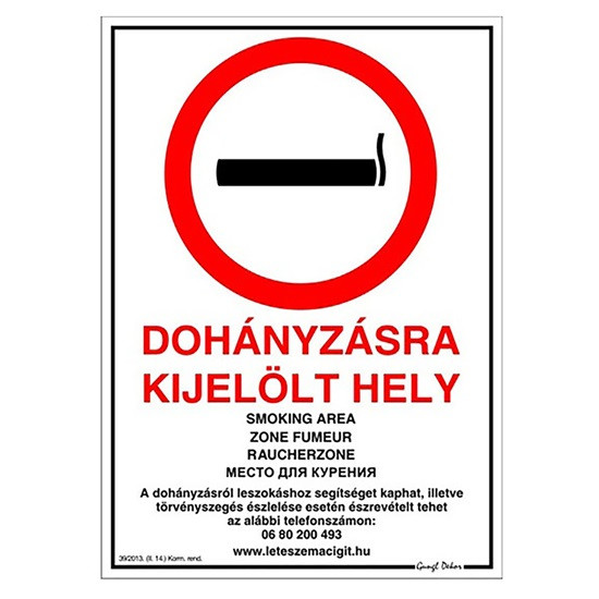 "Dohányzásra kijelölt hely" műanyag információs tábla több nyelven