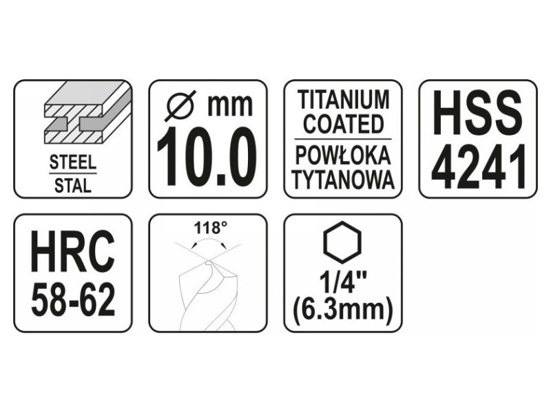 A marófúró minőségi, nagy sebességű, titánnal bevont HSS 4241 acélból készült. Professzionális, ipari alkalmazásokra szánva.