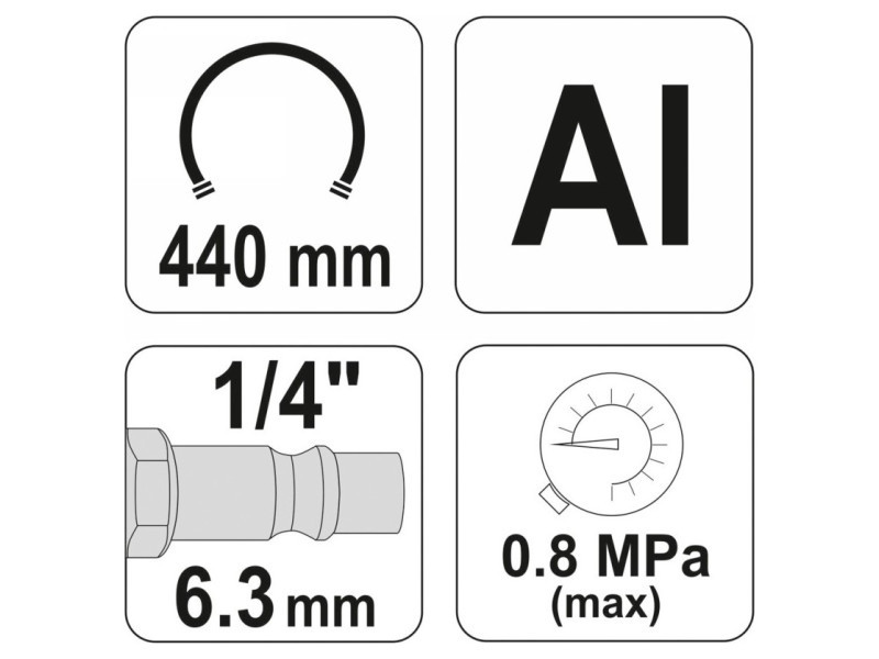 A fegyver nyomásmérővel van ellátva, amellyel ellenőrizhető a pumpálni kívánt termék légnyomása, és csúszásmentes fogantyúval rendelkező alumínium testtel.